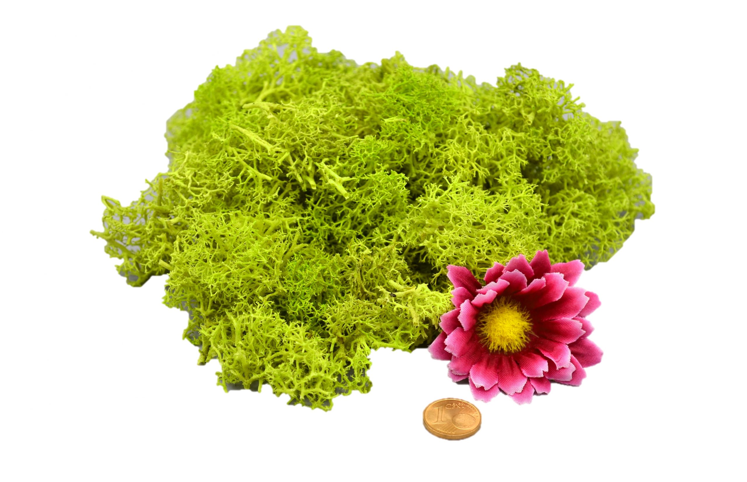 Muwse Islandmoos Frühlingsgrün händisch gerupft, gefärbt, präpariert und 2-fach handgereinigt.