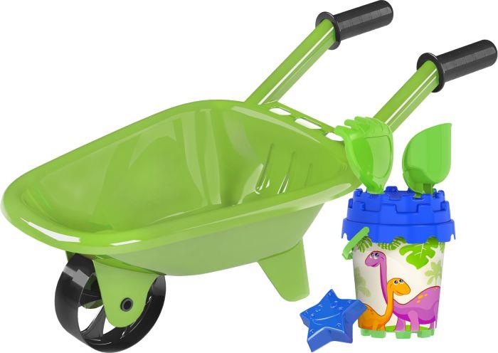 Die Outdoor active Schubkarre besteht aus hochwertigem Kunststoff. Außerdem enthalten sind ein Eimer mit Sieb, ein Förmchen, sowie Harke und Schaufel. Maße ca. 60×26,5 cm. Für Kinder ab 24 Monaten.